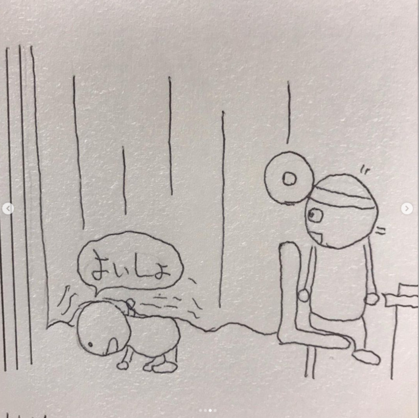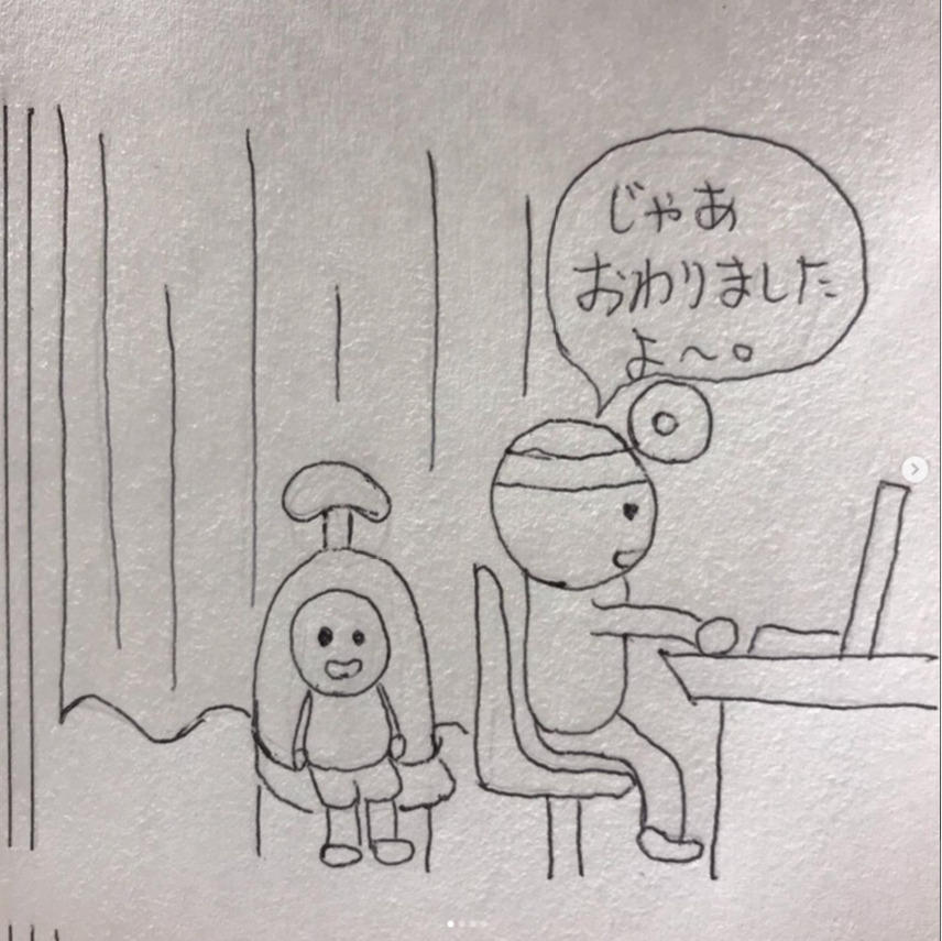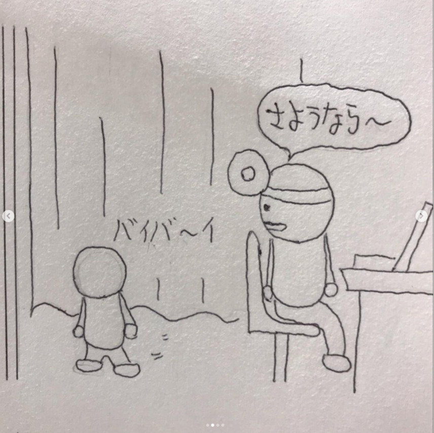 何故か子供達はカーテンの下をくぐって出て行きます。